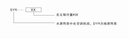 水/地源熱泵中央空調(diào)適用于既有制冷需求又有供暖或供熱需求的一切建筑物。如辦公、住宅樓和酒店、賓館、商場等,也可用于回收低溫位的廢水余熱。四、工程用水源熱泵機組型號代號
