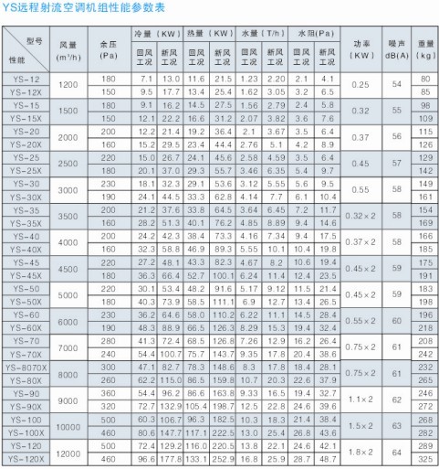 五、遠(yuǎn)程射流空調(diào)機(jī)組參數(shù)